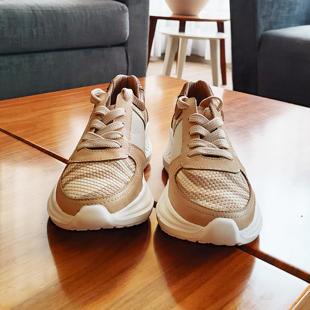 Calzado, tenis casual fabricado con cuero vacuno de alta calidad, con diferentes procesos de texturizados y acabados.